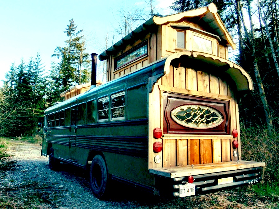 โปรเจ็คนี้เริ่มจากการซื้อรถบัสโรงเรียนรุ่นปี 1994 ที่ปลดระวางแล้วเอามาตกแต่งงานไม้เพิ่ม ต่อเติมเป็นเหมือนบ้านกระท่อมสไตล์คอทเทจ รูปทรงหลังคาหน้าจั่วดูเป็นเอกลักษณ์ เรียกว่าขับไปที่ไหนก็คงจะมีแต่คนมองในความน่ารักน่าเอ็นดูของมันเลยล่ะ