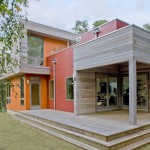 ขณะที่ภายในบ้าน ขนาดประมาณ 50 ตร.ม. จะตกแต่งด้วยไม้ทั้งหมด จึงให้สีสันเรียบสวยอันเป็นธรรมชาติและก่อให้เกิดความอบอุ่น โดยผสานลูกเล่นของผนังซึ่งเป็นประตูบานเลื่อนกระจก พร้อมกับพื้นที่กระจกรับแสงตรงหลังคาหน้าจั่ว ให้แสงสว่างสาดส่องเข้ามาเพิ่มความมีมิติและกว้างขวาง