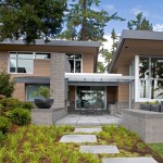 บ้านออกแบบในรูปทรงสี่เหลี่ยม แบ่งเป็นสัดเป็นส่วน ภายนอกใช้สีเรียบทึบ แต่ลดความอึดอัดด้วยกระจกหน้าต่างที่เรียงกัน เพิ่มความรู้สึกปลอดโปร่งให้แก่ตัวบ้าน ด้านนอกมีโรงจอดรถแยกออกมาด้านนอกติดกับทางเข้าด้านหน้า
