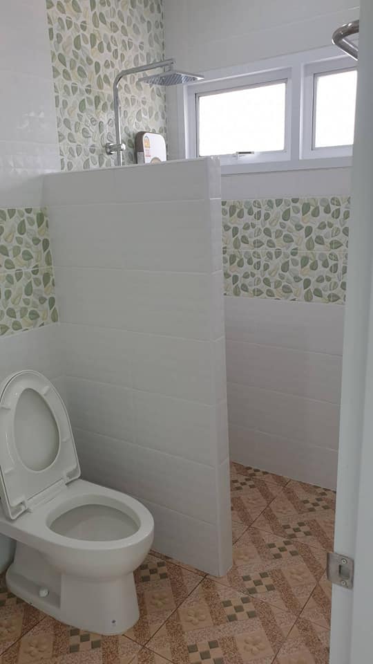 เช่นเดียวกันกับห้องน้ำที่มีการตกแต่งที่เรียบง่ายในโทนสีขาว โดยมีการแบ่งพื้นที่การใช้งานแบบแห้งและแบบเปียกเอาไว้อย่างเป็นสัดส่วน