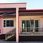 ลักษณะบ้านยกพื้นต่ำ โครงสร้างคอนกรีต หลังคาทรงปีกนก ด้านหน้ามีระเบียงพร้อมชายคาคอยต้อนรับผู้ที่มาเยือน ตกแต่งด้วยระแนงไม้ที่มีโมบายน่ารักๆ แขวนประดับอยู่ พื้นที่ภายนอกปลูกไม้กระถาง เติมความสดชื่นให้กับตัวบ้านได้เป็นอย่างดี
