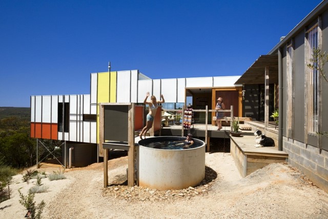 ตัวบ้านโครงสร้างเหล็ก ออกแบบให้เด่นชัดกับงานโครงสร้างไม้เพิ่มเติม เป็นไปตามคอนเซ็ปของบ้าน รูปทรงกล่องเรียบง่าย และตกแต่งด้วยโทนหลากสี เน้นความสนุกสนานในการออกแบบ และวัสดุจากเหล็กและกระจกเช่นกัน