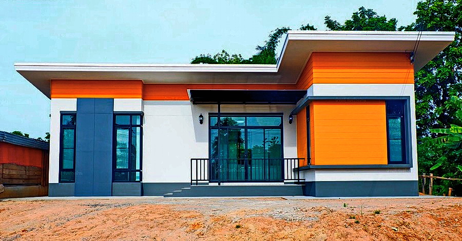 แบบบ้านชั้นเดียวสไตล์โมเดิร์น หลังคาเพิงหมาแหงน พื้นที่ใช้สอยกว้างขวางและครบครัน งบประมาณ 1 ล้านบาท