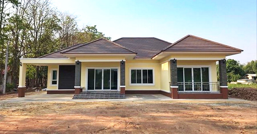 แบบบ้านชั้นเดียวสไตล์โมเดิร์น รูปทรงตัวยู (U-Shaped House) 3 ห้องนอน 1 ห้องน้ำ พร้อมโรงจอดรถ