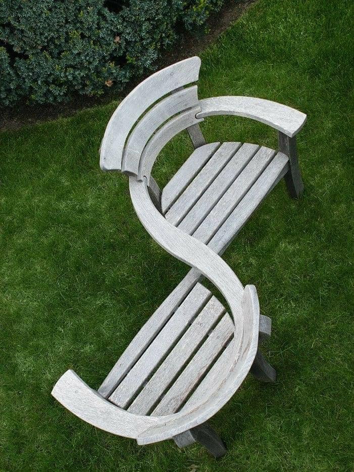 9. ม้านั่งยาวรูปตัว S พร้อมกับโต๊ะทรงกลมเล็ก ๆ