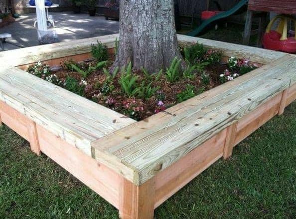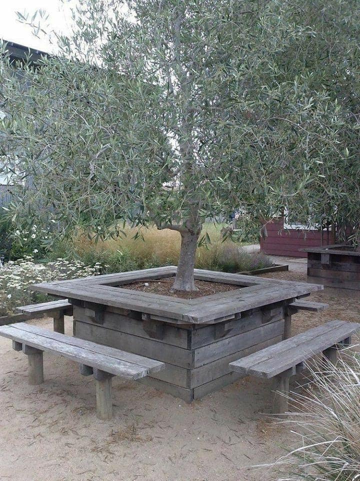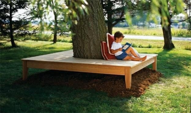 5. ที่นั่งไม้แบบเตี้ย ๆ ที่ออกแบบล้อมรอบต้นไม้