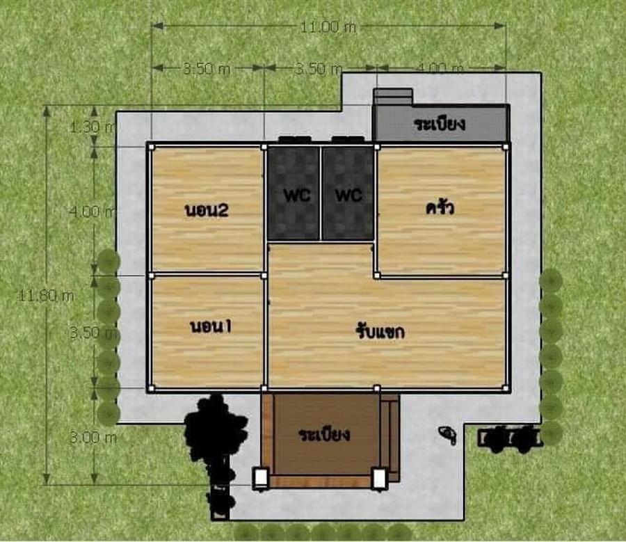 แบบบ้านชั้นเดียวสไตล์คอนเทมโพรารีหลังนี้ประกอไปด้วย 2 ห้องนอน 2 ห้องน้ำ 1 ห้องโถงนั่งเล่น 1 ห้องครัว พร้อมระเบียงหน้าบ้านและหลังบ้าน พื้นที่ใช้สอยทั้งหมดประมาณ 100 ตารางเมตร สอบถามข้อมูลเพิ่มเติมอื่น ๆ ได้จากช่องทางติดต่อด้านล่างนี้ได้เลยครับ