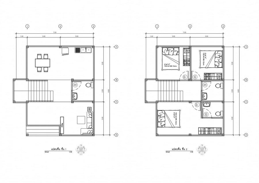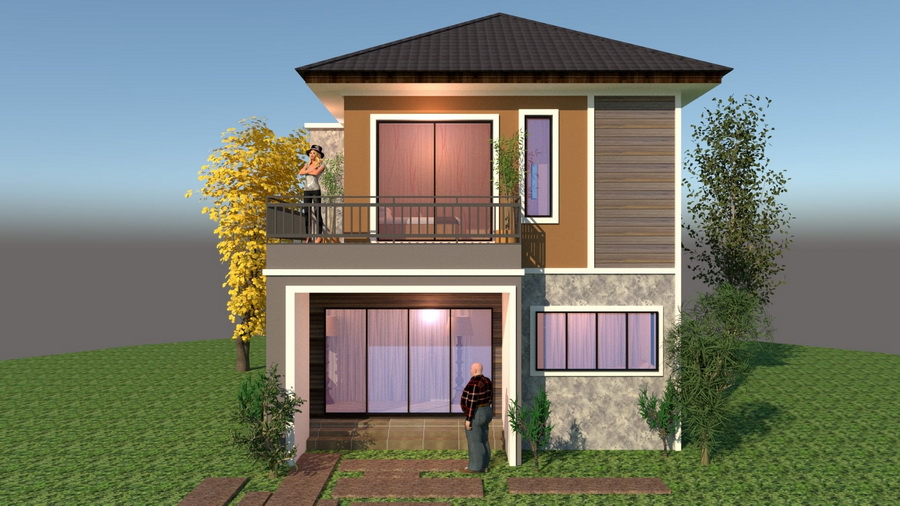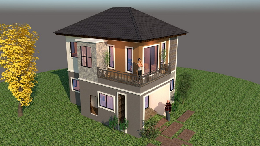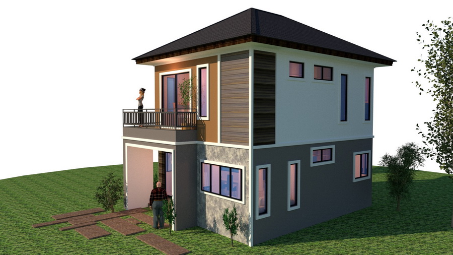 แบบบ้านสองชั้นสไตล์คอนเทมโพรารี 3 ห้องนอน 3 ห้องน้ำ พร้อมระเบียงชั้นสองรูปตัวแอล พื้นที่ 100 ตร.ม.