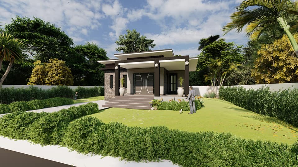 แบบบ้านหลังนี้ประกอบไปด้วย 3 ห้องนอน 1 ห้องน่้ำ 1 ห้องรับแขก พร้อมระเบียงทรงตัวแอลหน้าบ้าน บนพื้นที่ใช้สอยทั้งหมดราว 100 ตารางเมตร หากเพื่อน ๆ ชาวเว็บต้องการข้อมูลเพิ่มเติมเกี่ยวกับบแบบบ้านหลังนี้ สามารถสอบถามผู้ออกแบบได้โดยตรงผ่านช่องทางติดต่อท้ายบทความนี้เลยนะครับ ^_^