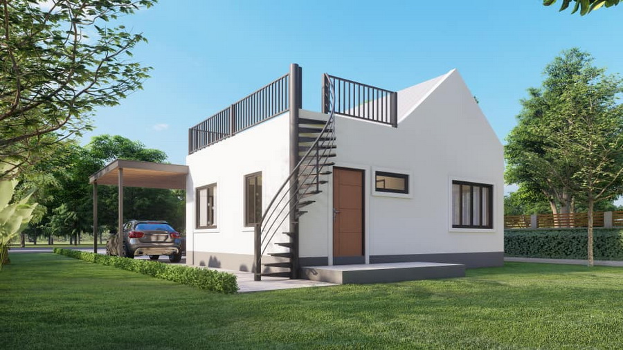 จุดเด่นของบ้านหลังนี้ คือ การออกแบบให้มีพื้นที่ดาดฟ้าเปิดโล่งอีกด้วย โดยจะมีบันไดทางขึ้นอยู่บริเวณหลังบ้าน ซึ่งเป็นบันไดวนแบบเหล็ก