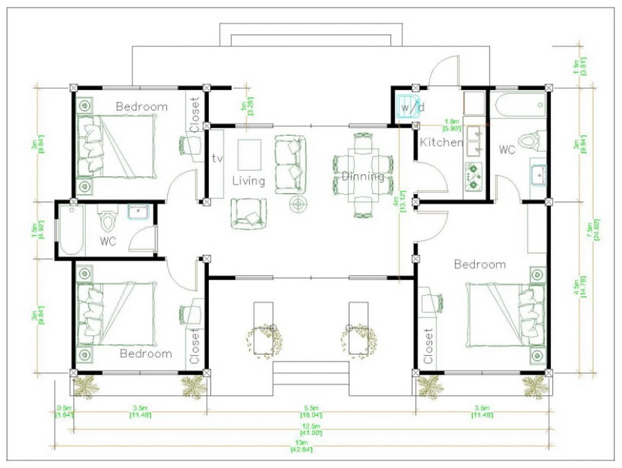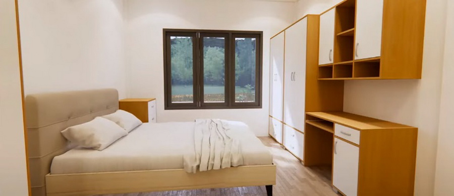แบบบ้านทรงแฝดสไตล์คอนเทมโพรารี 3 ห้องนอน 2 ห้องน้ำ พื้นที่ 100 ตร.ม.