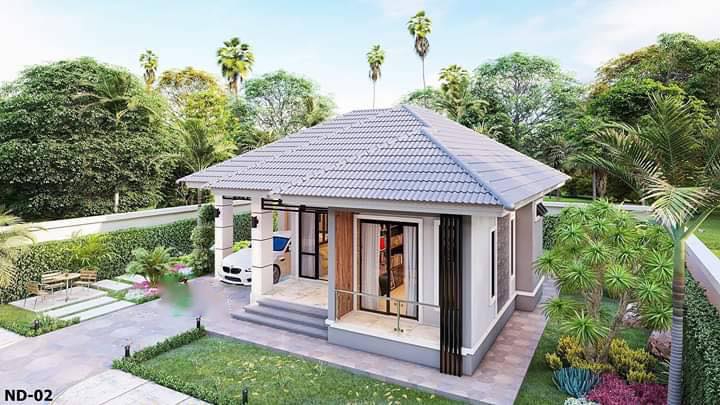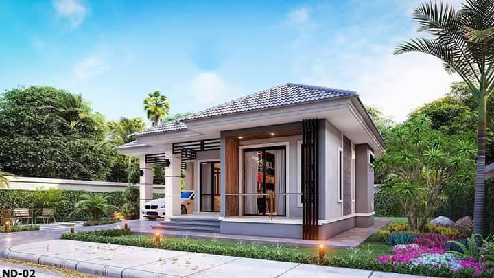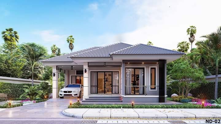 แบบบ้านชั้นเดียวสไตล์ร่วมสมัย ผลงานการออกแบบโดยทีมงานจาก PS Real Estate โดดเด่นด้วยรูปทรงที่เรียบง่ายแต่ทันสมัย มีเอกลักษณ์เฉพาะตัว เป็นบ้านขนาดเล็กที่จัดสรรฟังก์ชันการใช้งานจุดต่าง ๆ ได้่อย่างลงตัวบนพื้นที่เพียง 100 ตารางเมตร