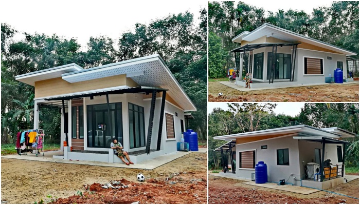 บ้านหลังนี้เป็นผลงานการก่อสร้างจาก Nbr Jo ลักษณะบ้านชั้นเดียวยกพื้นสูงเล็กน้อย โครงสร้างบ้านปูนรูปทรงเรขาคณิต สะท้อนความสวยงามทันสมัย การตกแต่งเน้นความเรียบง่ายในโทนสีเทา แซมด้วยผนังไม้เทียมสีอ่อนบริเวณใต้หลังคา ปิดทับด้วยหลังคาเมทัลชีททรงเพิงหมาแหงน