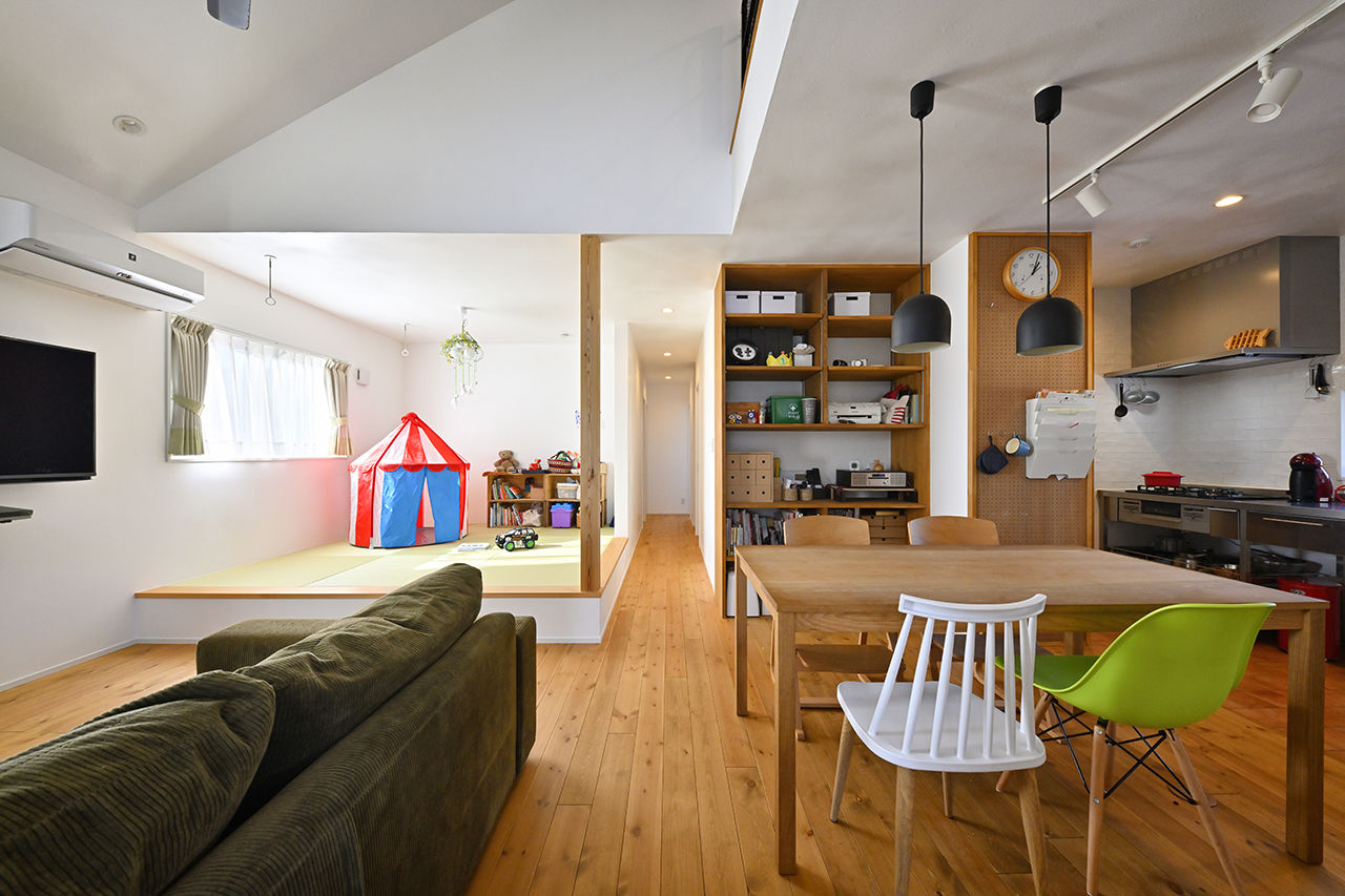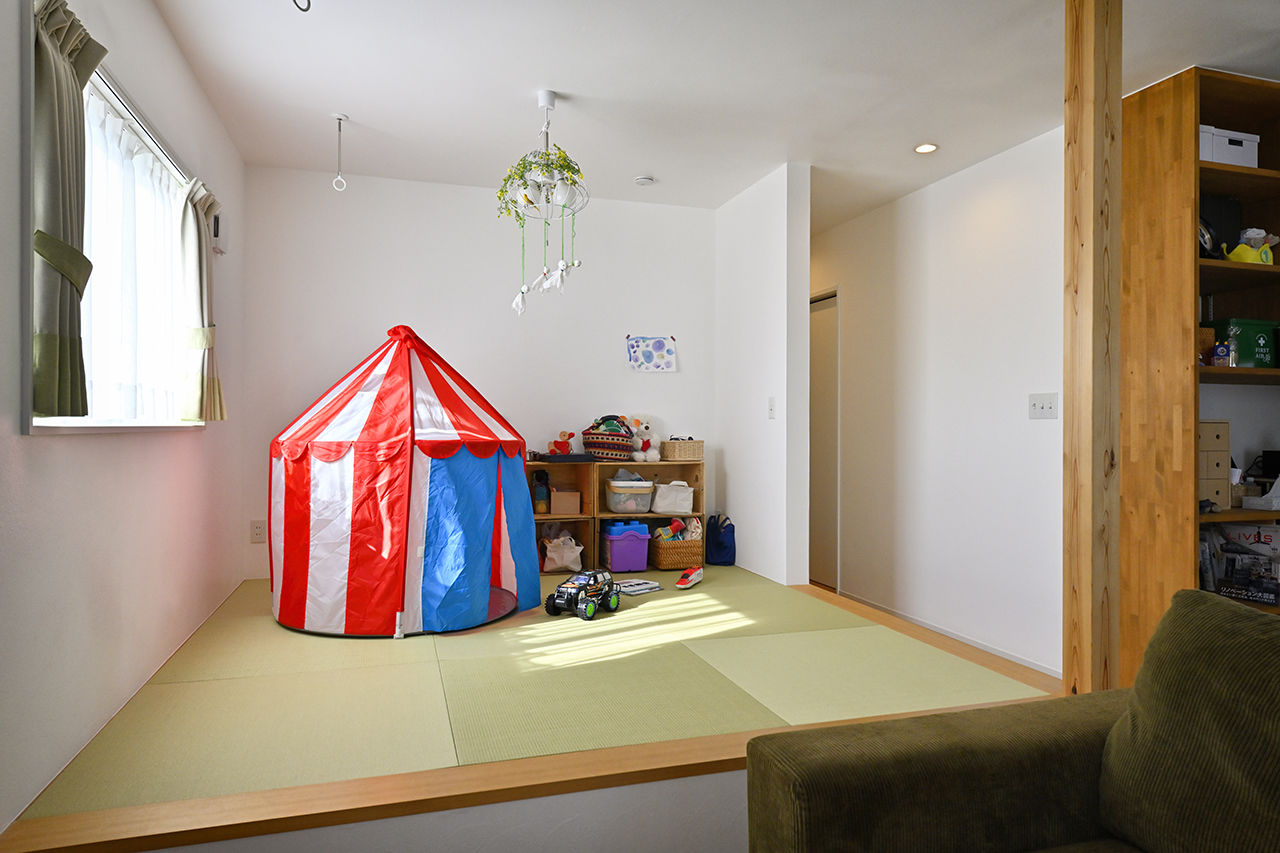 ถัดมาอีกนิดก็จะเป็นลานกิจกรรมเล็ก ๆ แบบยกพื้นสูง ปูนพื้นด้วยเสื่อทาทามิแบบญี่ปุ่น โดยใช้เป็นพื้นที่กิจกรรมและเล่นสนุกของลูก