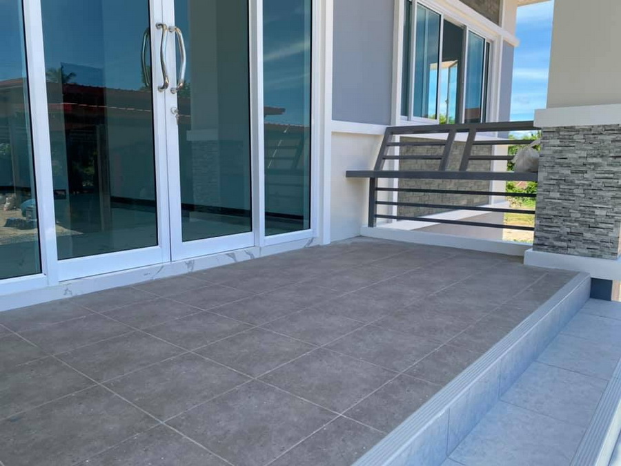 นอกจากนี้บริเวณหน้าบ้านนั้น ถูกออกแบบให้เป็นระเบียงขนาดพอเหมาะ ซึ่งมาพร้อมกับม้านั่งแบบมีพนักพิง ที่เป็นมุมพักผ่อนหน้าบ้านที่สวยงามกำลังดี