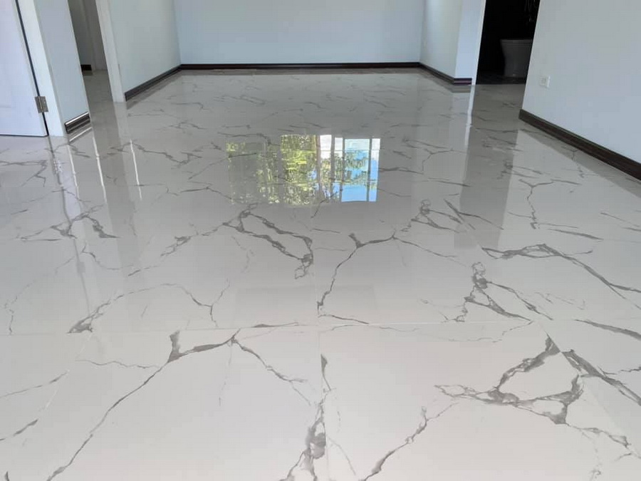 เมื่อเข้ามาภายในบ้าน เราจะพบกับห้องโถงหลักของบ้านที่มีพื้นที่กว้างพอสมควร พื้นห้องถูกตกแต่งด้วยกระเบื้องขัดมันลายหินอ่อนอย่างสวยงาม