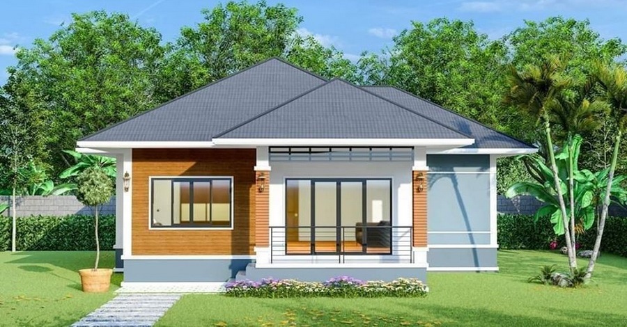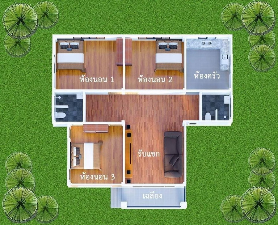 แบบบ้านชั้นเดียวสไตล์คอนเทมโพรารีหลังนี้ประกอบไปด้วย 3 ห้องนอน 2 ห้องน้ำ 1 ห้องโถงนั่งเล่น 1 ห้องครัว พื้นที่ใช้สอยรวม 106 ตารางเมตร งบประมาณก่อสร้าง 1.09 ล้านบาท เฉพาะแบบแปลนพร้อมวิศวกรรับรอง