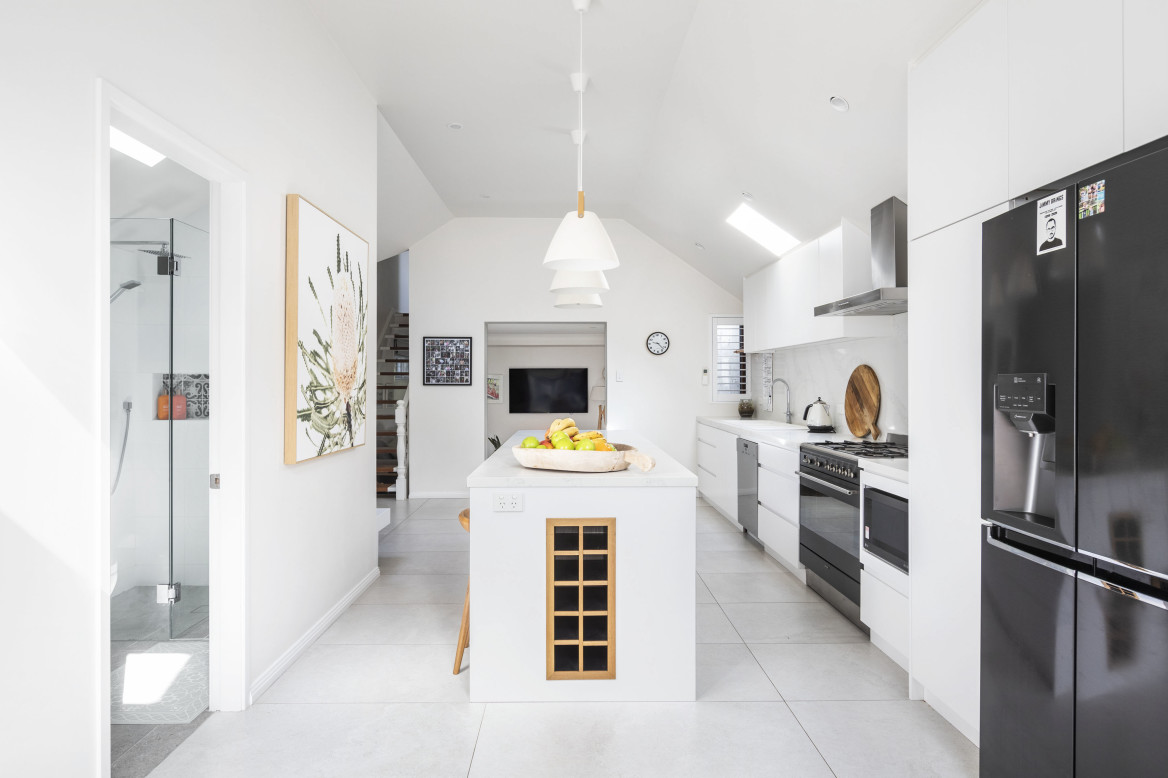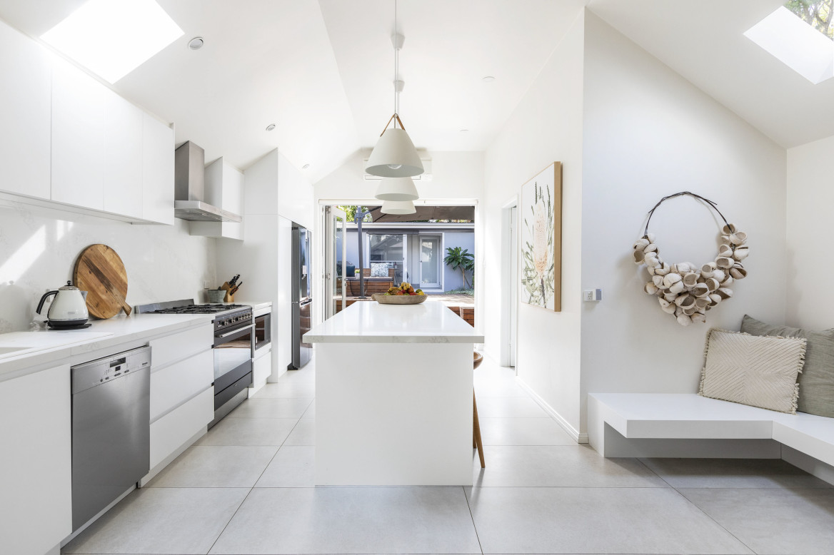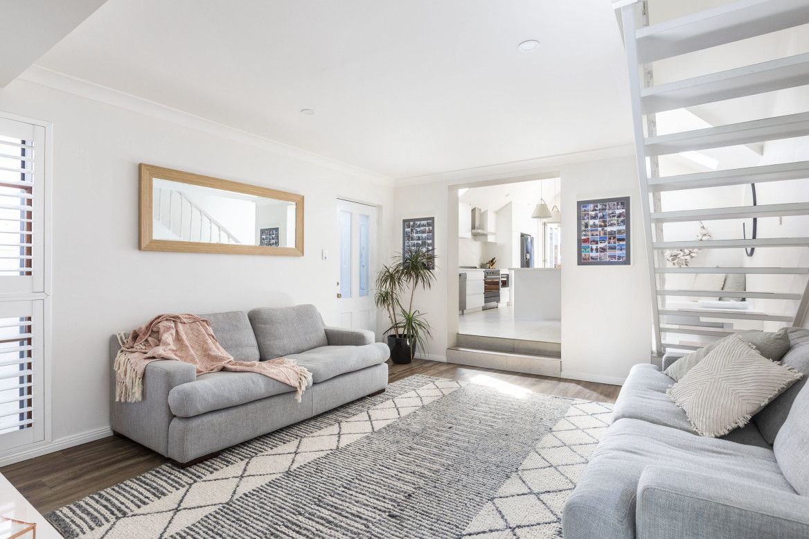 ภายในตัวบ้านเอง ก็มีการตกแต่งด้วยโทนสีสว่างอย่างสีขาว ซึ่งเมื่อเลือกใช้เฟอร์นิเจอร์ในโทนสีอ่อน ๆ คู่กัน ก็ทำให้พื้นที่นี้ให้บรรยากาศที่ผ่อนคลายได้ดีเลย