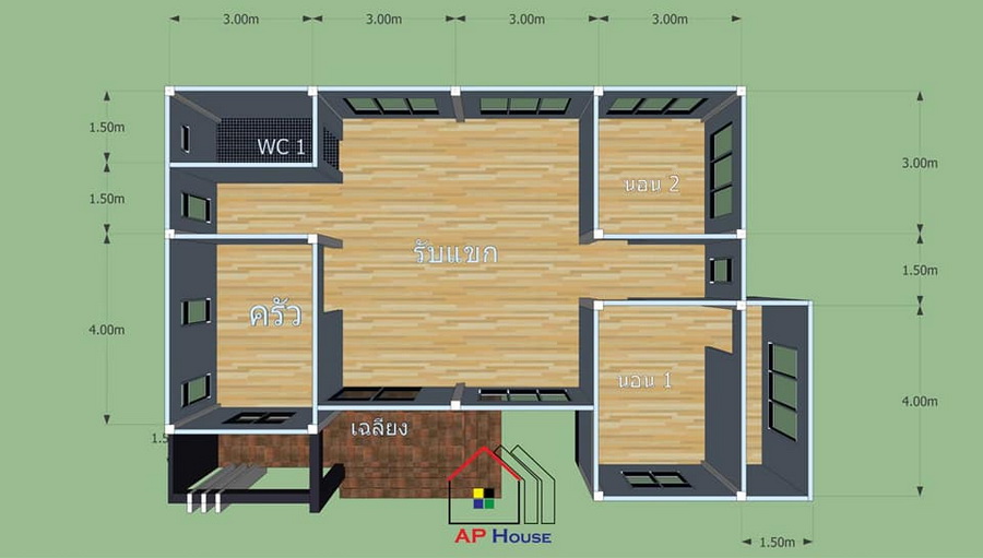 แบบบ้านหน้ากว้างสไตล์โมเดิร์นหลังนี้ประกอบไปด้วย 2 ห้องนอน 1 ห้องน้ำ 1 ห้องโถงนั่งเล่น 1 ห้องครัว พร้อมเฉลียงหน้าบ้าน พื้นที่ใช้สอยทั้งหมดประมาณ 108 ตารางเมตร สามารถสอบถามข้อมูลเพิ่มเติมได้จากช่องทางติดต่อด้านล่างนี้ได้เลยครับ