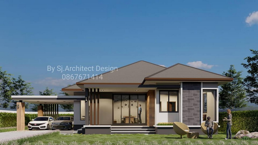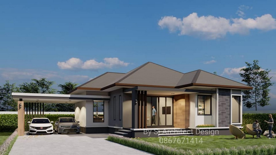 แบบบ้านสไตล์คอนเทมโพรารีหลังนี้ประกอบไปด้วย 3 ห้องนอน 2 ห้องน้ำ 1 ห้องโถงนั่งเล่น 1 ห้องครัว 1 ห้องพระ และจอดรถ 2 คัน พื้นที่ใช้สอยทั้งหมดประมาณ 110 ตารางเมตร สามารถสอบถามข้อมูลเพิ่มเติมได้จากช่องทางติดต่อด้านล่างนี้ได้เลยครับ