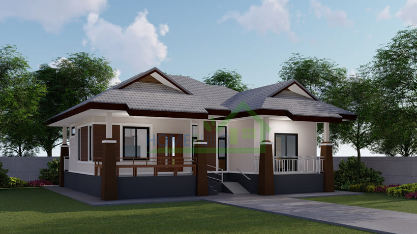 แบบบ้านชั้นเดียวยกพื้นสูงสไตล์ร่วมสมัย (แบบบ้าน HBA-001) ผลงานการออกแบบของทีมงาน Homebuild แบบบ้านชั้นเดียวดีไซน์เรียบง่าย ในสไตล์ร่วมสมัยที่เข้าได้กับคนทุกเพศทุกวัย พร้อมการออกแบบพื้นที่ใช้สอยภายในที่เน้นการปฏิสัมพันธ์ระหว่างสมาชิกในครอบครัวเป็นพิเศษ