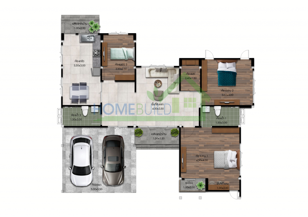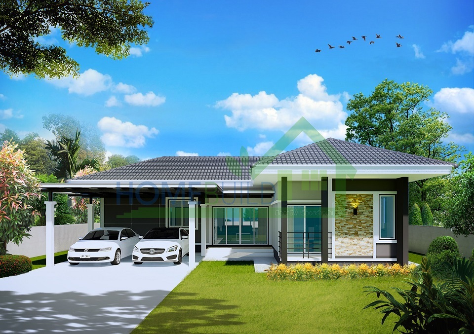 แบบบ้านโมเดิร์นชั้นเดียว ทรงหน้ากว้าง ผลงานการออกแบบโดยทีมงาน Homebuild...