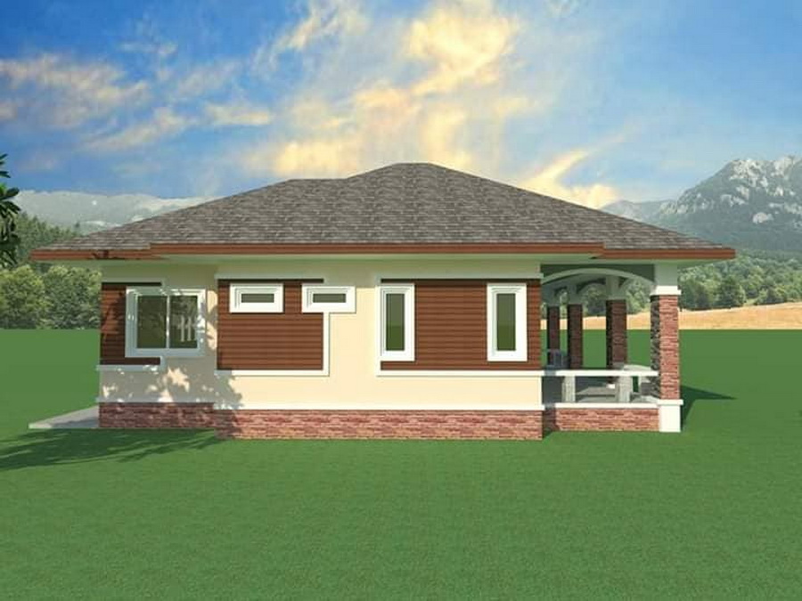 แบบบ้านชั้นเดียวสไตล์คอนเทมโพรารีหลังนี้ประกอบไปด้วย 3 ห้องนอน 2 ห้องน้ำ 1 ห้องโถงนั่งเล่น 1 ห้องครัว พร้อมพื้นที่ซักล้าหลังบ้าน พื้นที่ใช้สอยทั้งหมด 115 ตารางเมตร ราคาประมาณสร้าง 1.2 ล้านบาท