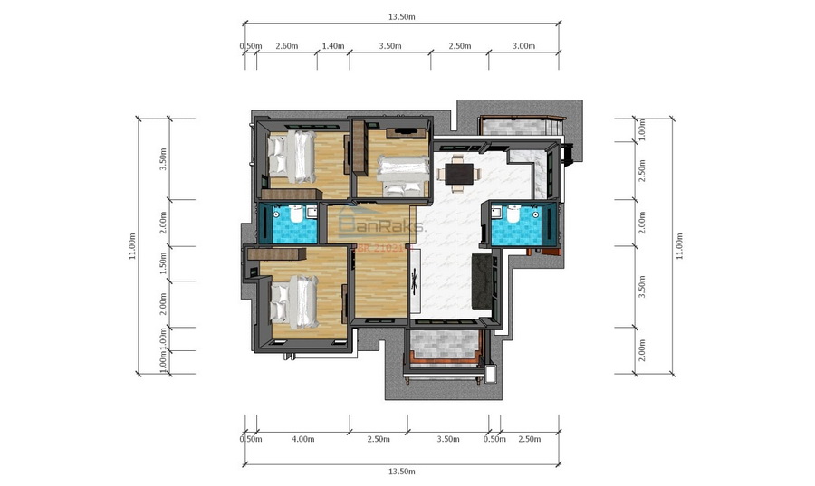 แบบบ้านพักอาศัยสไตล์คอนเทมโพรารีหลังนี้ประกอบไปด้วย 3 ห้องนอน 2 ห้องน้ำ 1 ห้องโถงรับแขก 1 ห้องครัวพร้อมพื้นที่รับประทานอาหาร โซนทำงาน พื้นที่ซักล้างและเฉลียงหน้าบ้าน พื้นที่ใช้สอย 118 ตารางเมตร งบประมาณอยู่ที่ประมาณ 2.15 ล้านบาท