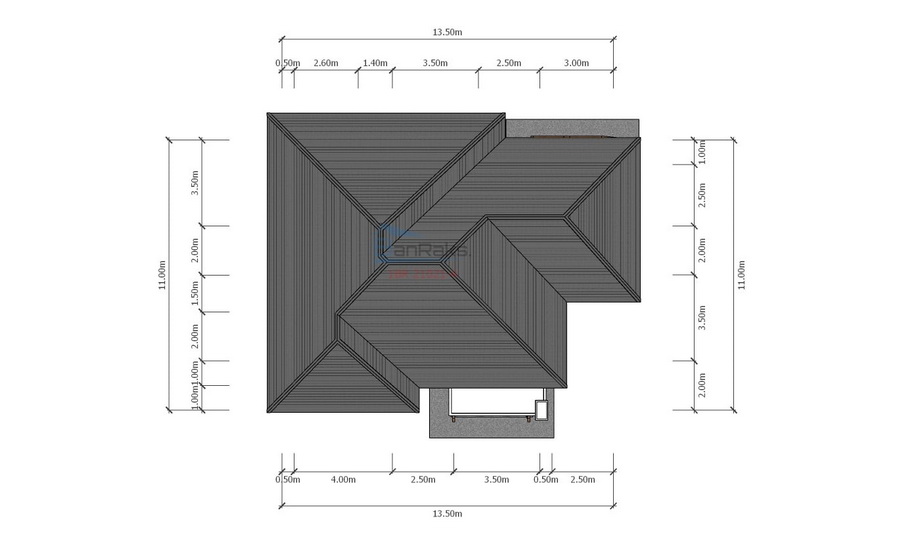 แบบบ้านหลังนี้เป็นบ้านชั้นเดียว ฐานของบ้านถูกยกขึ้นสูง ตัวบ้านมีดีไซน์ที่เน้นเส้นสายที่คมชัดตามรูปทรงแบบเรขาคณิต ผสานการออกแบบไปกับหลังคาทรงปั้นหยา จึงสะท้อนดีไซน์แบบร่วมสมัยได้อย่างชัดเจน มาพร้อมกับการออกแบบที่ทำให้บ้านมีความโปร่งสบายสุด ๆ