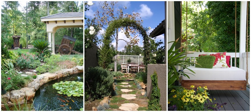 ตกแต่งเป็นซุ้มไม้ไปในตัว เลือกใช้วัสดุจากไม้ในการทำโครงสร้างและตกแต่ง เลือกของใช้จุกจิกน่ารัก ให้เข้ากัน มีพื่นที่สูงๆต่ำๆ รองรับการลงไปแช่น้ำด้วยก็ดี สวยงามและได้ฟังก์ชั่นไปอีกแบบ