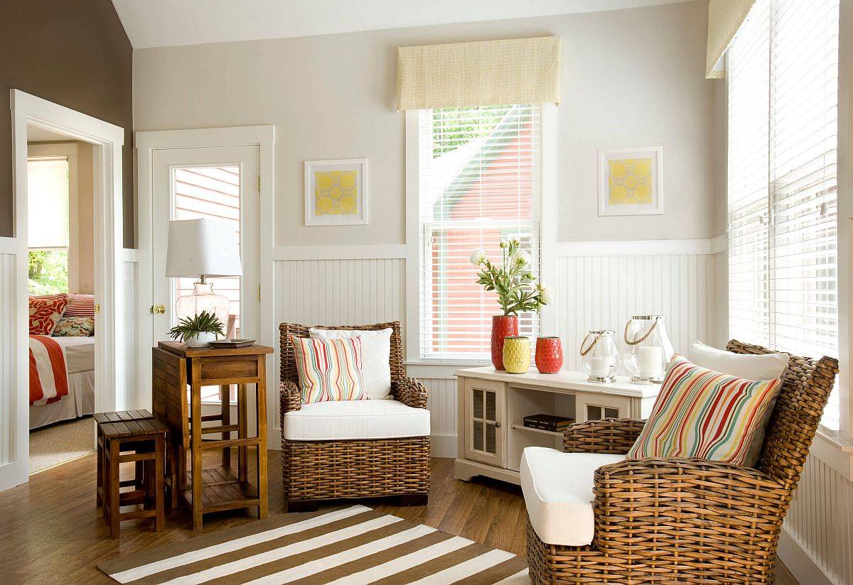 เมื่อนึกถึงบรรยากาศแบบชายหาด หรือชายทะเล ภาพที่เรานึกถึงก็จะเป็นภาพของบรรยากาศที่ปลอดโปร่ง มีสายลมแสงแดด พร้อมกับสีสันต่าง ๆ ที่สดใส ซึ่งเป็นบรรยากาศเพื่อการพักผ่อนโดยเฉพาะ จึงเป็นไอเดียที่ดีที่เราจำนำเอาบรรยากาศแบบนี้มาใช้ในการตกแต่งพื้นี่พักผ่อนภายในบ้าน