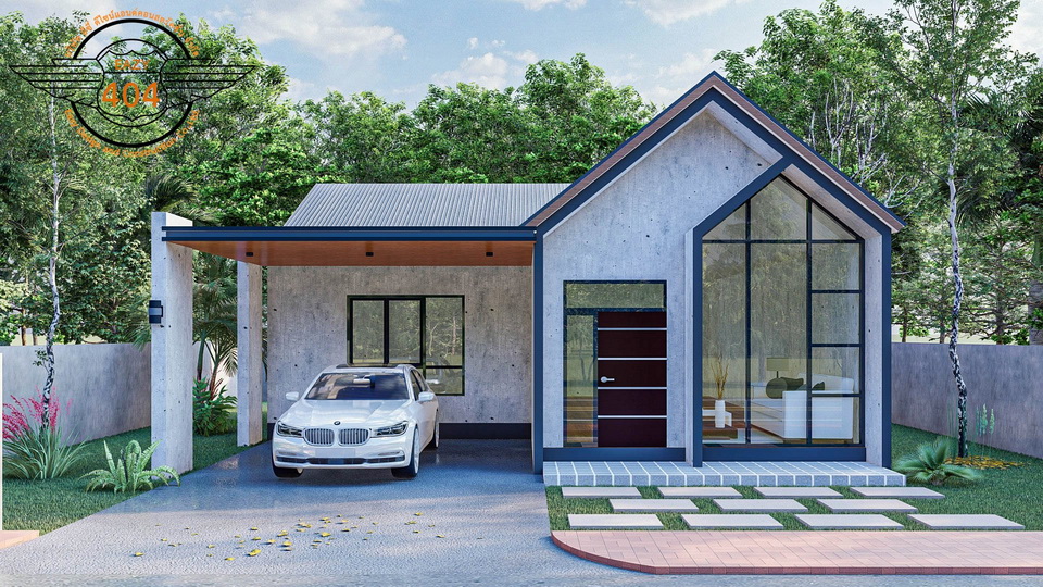 แบบบ้านมินิมอลผนังปูนเปลือย ผลงานการออกแบบโดยทีมงานจาก บริษัท แบบบ้านสวยนคสวรรค์ จำกัด รูปทรงบ้านเรียบง่ายแต่มีเอกลักษณ์ จัดสรรพื้นที่ภายในอย่างเป็นสัดส่วนไม่ซับซ้อน พร้อมการตกแต่งที่เน้นความงดงามแบบดิบ ๆ จากผนังปูนเปลือย