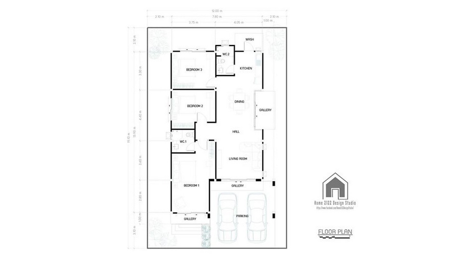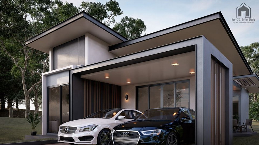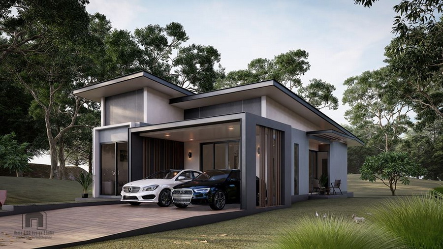แบบบ้านชั้นเดียวสไตล์โมเดิร์นหลังนี้ประกอบไปด้วย 3 ห้องนอน 2 ห้องน้ำ 1 ห้องครัว 1 ห้องรับแขก 2 ที่จอดรถ พื้นที่ใช้สอยทั้งหมด 125 ตารางเมตร งบก่อสร้างเริ่มต้นที่ประมาณ 1.2 ล้านบาท