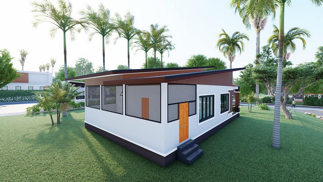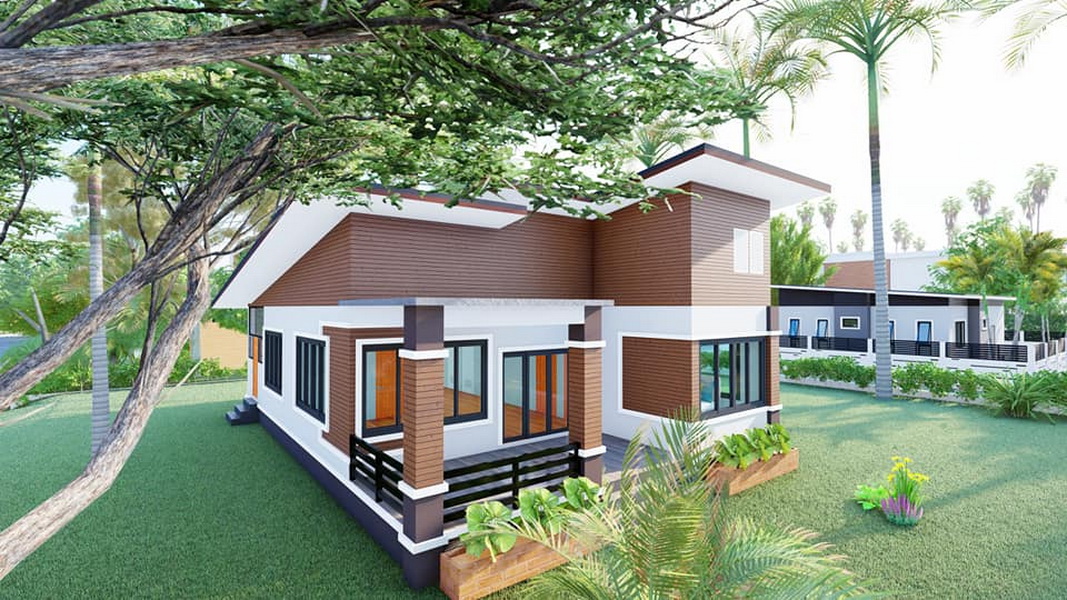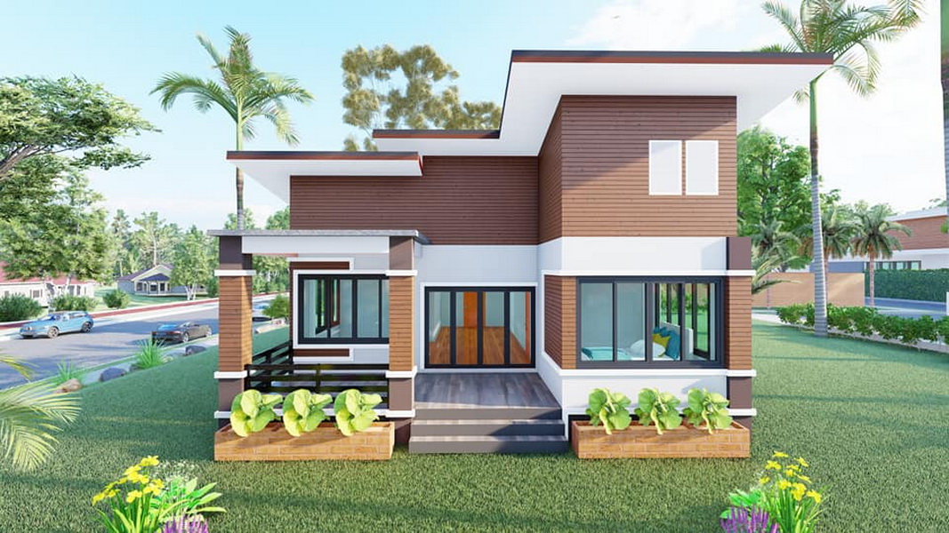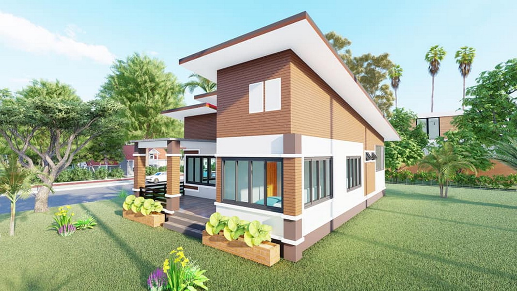 บ้านหลังนี้เป็นบ้านขนาดชั้นเดียว ฐานของบ้านถูกยกขึ้นสูง จึงช่วยป้องกันปัญหาน้ำท่วมขังในช่วงหน้าฝนได้ดี ตัวบ้านมีรูปทรงเรขาคณิตตามแบบฉบับของบ้านทรงโมเดิร์น ภายนอกผสานการตกแต่งด้วยโทนสีขาวและสีน้ำตาลที่เข้ากันอย่างลงตัว