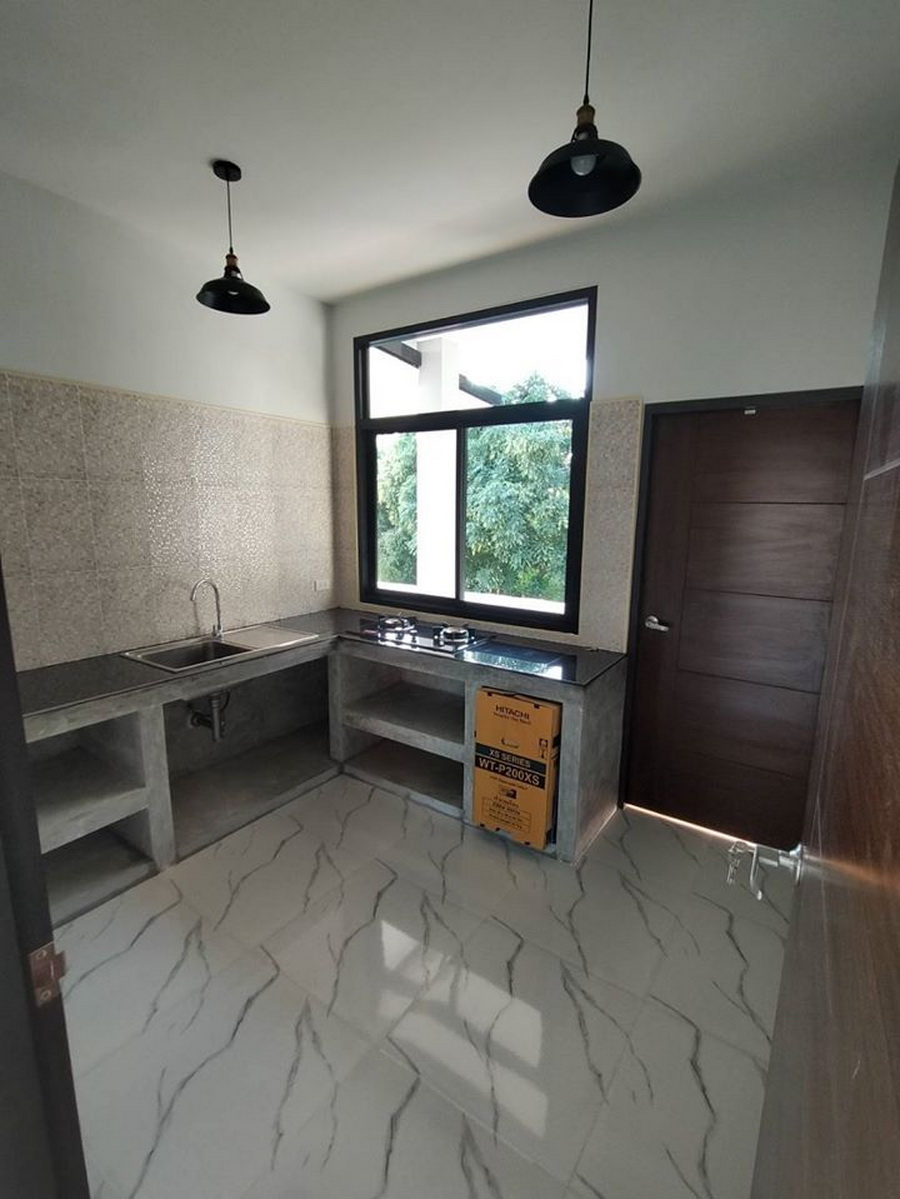 สำหรับห้องครัวมีพื้นที่ในขนาดที่พอเหมาะ เคาน์เตอร์ครัวเป็นแบบปุนเปลือยที่ให้กลิ่นอายอินดัสเทรียลลอฟท์ พร้อมกับมีสิ่งอำนวยความสะดวกที่ครบครัน