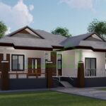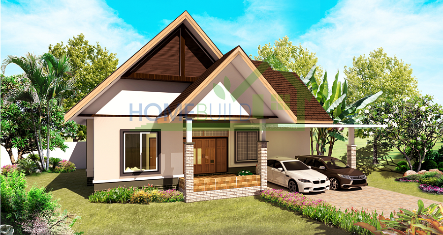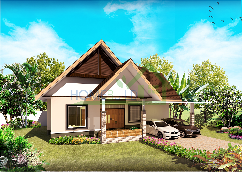 แบบบ้านทรงจั่วสไตล์คอทเทจ (แบบบ้าน HBA-009) ผลงานการออกแบบจาก Homebuild บ้านชั้นเดียวดีไซน์น่ารักอบอุ่น โดดเด่นด้วยทรงหลังคาที่มีเอกลักษณ์ พร้อมพื้นที่ใช้สอยที่ครบครันบนขนาดตารางเมตรที่ไม่มาก จัดสรรองค์ประกอบภายในได้อย่างลงตัว