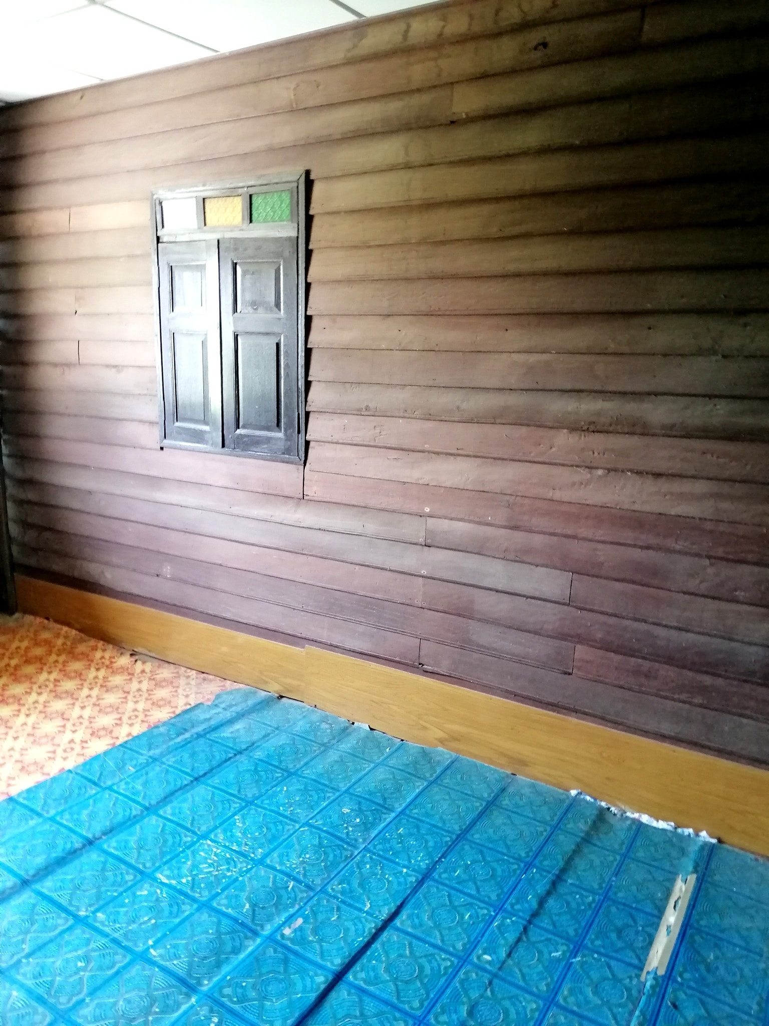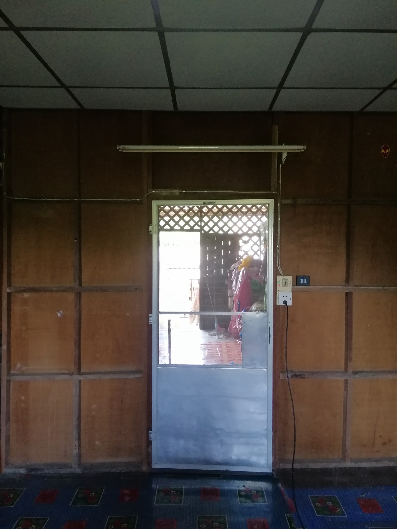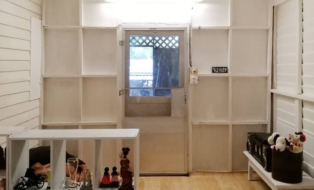 ด้านประตูทางเข้ายังคงมีมุ้งลวด แต่ก็ได้เปลี่ยนประตูไม้ใหม่ในโทนสีขาว
