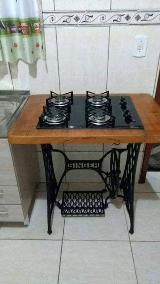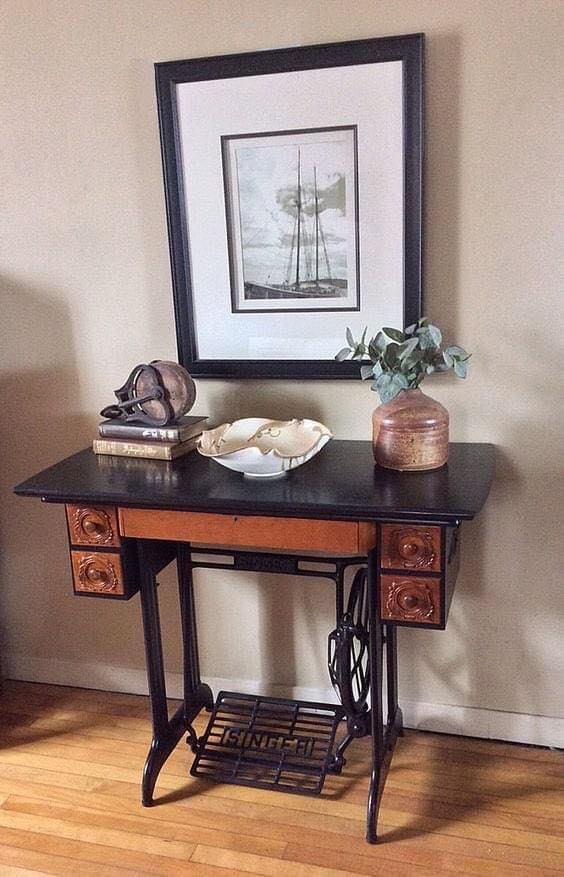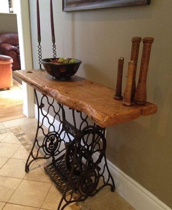 จักรเย็บผ้าเป็นเครื่องมือสำหรับการสร้างผลงานเสื้อผ้าต่าง ๆ ตัวเครื่องจักรมีโครงสร้างที่แข็งแรงและมีลักษณะคล้ายโต๊ะ นั่งจึงทำให้เมื่อเวลาจักรเย็บผ้าเสื่อมสภาพ หรือใช้การใช้ได้แล้ว เราสามารถนำเอาโครงของเครื่องเย็บผ้ามาทำประโยชน์อื่น ๆ จากความแข็งแรงของมันได้