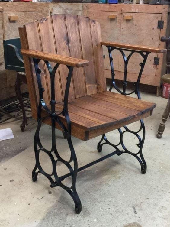 3. เก้าอี้ไม้ที่ได้โครงมาจากจักรเย็บผ้า