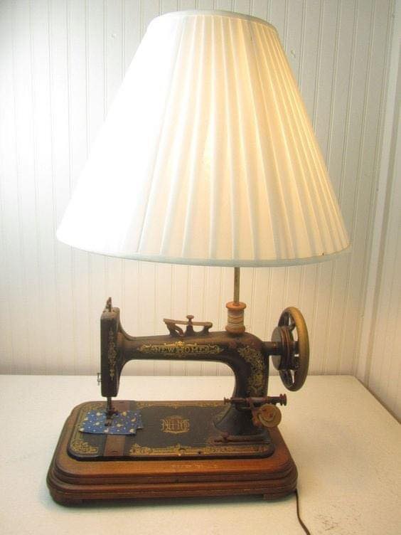 4. โคมไฟที่มีฐานเป็นจักรเย็บผ้าแบบโบราณ