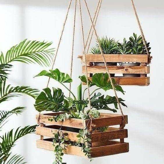 1. ตะกร้าไม้แบบแขวนด้วยเชือกป่านสี่มุม