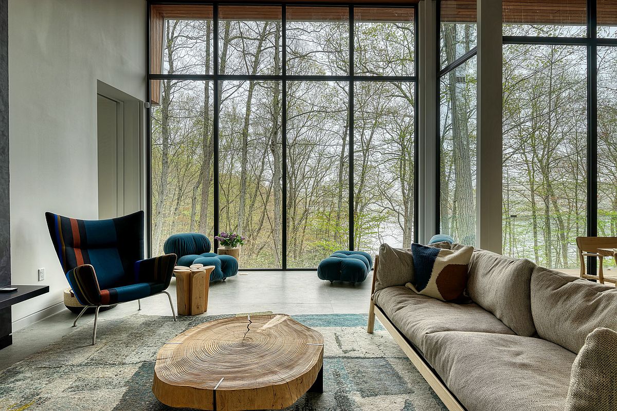 ธรรมชาติจากต้นไม้และสีเขียว เป็นสิ่งที่พื้นฐานที่สุดที่ช่วยให้ความผ่อนคลายที่สุด ดังนั้นการออกแบบห้องนั่งเล่นให้มีฉากหลังหรือมีองค์ประกอบที่เป็นธรรมชาติจะช่วยสร้างพื้นที่สงบผ่อนคลายไว้ช่วยให้เราคลายเคลียดได้เป็นอย่างดี
