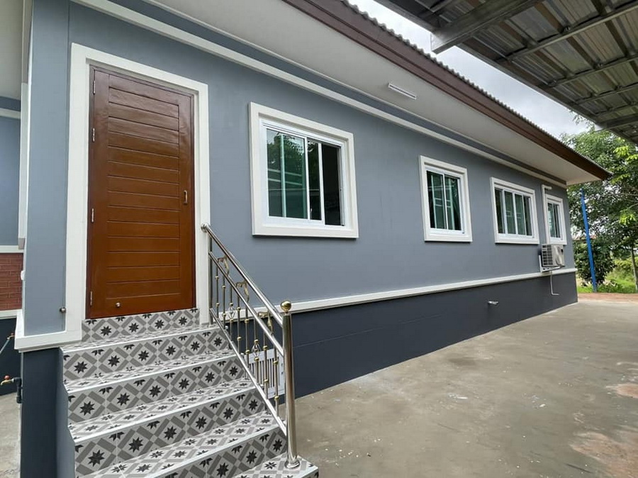 บ้านชั้นเดียวสไตล์คอนเทมโพรารีหลังนี้ประกอบไปด้วย 3 ห้องนอน 2 ห้องน้ำ 1 ห้องโถงนั่งเล่น 1 ห้องครัว 1 ระเบียงหน้าบ้านพร้อมม้านั่ง พื้นที่ใช้สอยทั้งหมดประมาณ 130 ตารางเมตร งบก่อสร้างเริ่มต้นที่ประมาณ 1.8 ล้านบาท