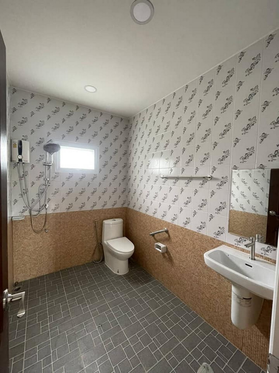 แม้แต่ห้องน้ำ ก็เป็นอีกห้องที่มีพื้นที่กว้าง ภายในจึงสามารถจัดมุมสำหรับการใช้งานได้อย่างเป็นสัดส่วน สะดวกครบทุกฟังก์ชันการใช้งาน