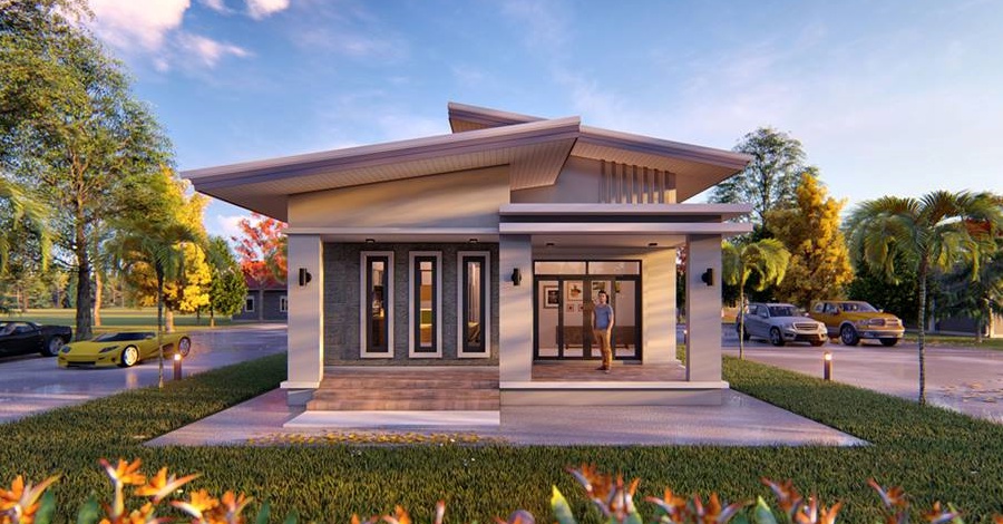 กลับมาพบกับ ในบ้าน กันอีกแล้วนะคะ ครั้งนี้เรามาพร้อมกับ แบบบ้านสไตล์โมเดิร์น ดีไซน์บานชั้นเดียว โดดเด่นด้วยหลังคาทรงปีกนก ภายนอกเน้นตกแต่งเรียบง่าย แต่ก็แฝงไว้ด้วยความสวยงามสะดุดตา ครบครันทุกพื้นที่ใช้สอยสำหรับครอบครัวขนาดกลาง เราลองไปชมกันเลยค่ะ
