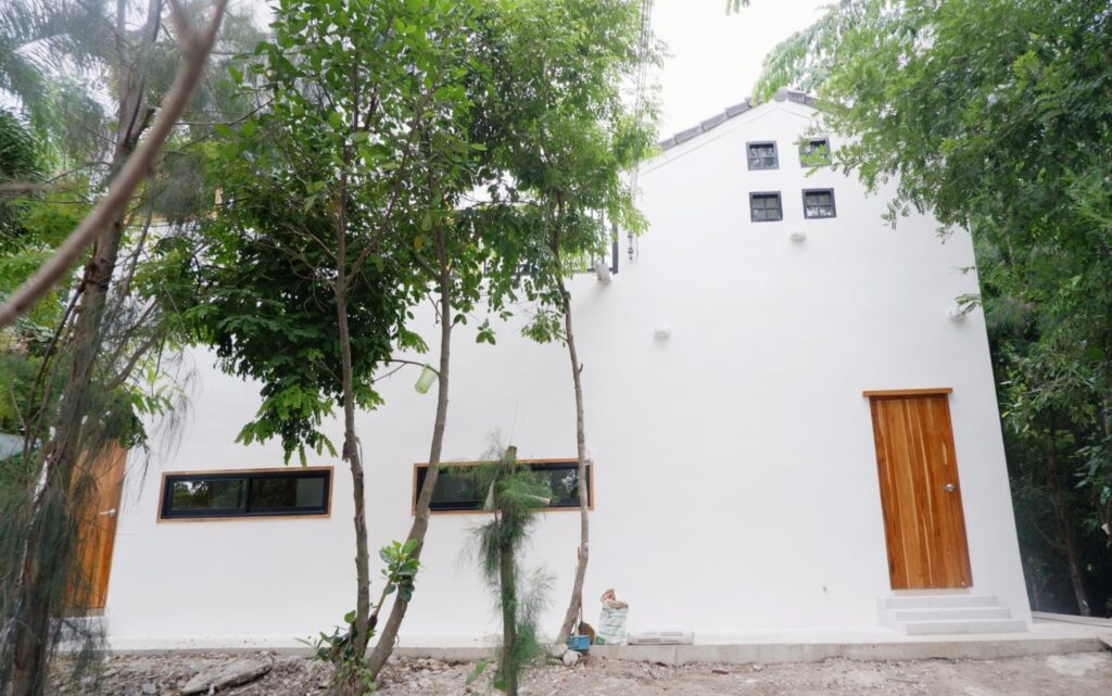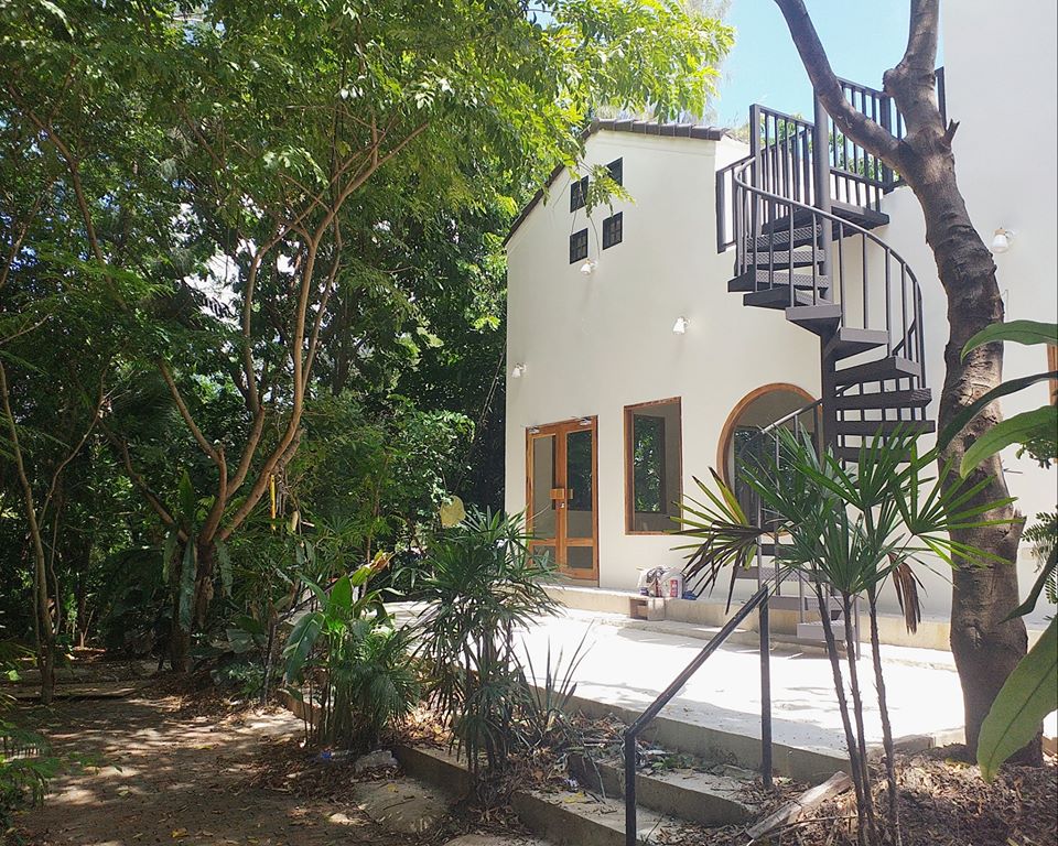 ลักษณะตัวบ้านสองชั้นทรงสูง หลังคาทรงจั่ว ตกแต่งผนังภายนอกด้วยโทนสีขาวทั้งหมด แทรกไปด้วยรายละเอียดของงานไม้จากประตูและหน้าต่าง นอกจากนี้ ยังมีบันไดวนเป็นทางเดินขึ้นไปยังชั้นดาดฟ้าด้วย