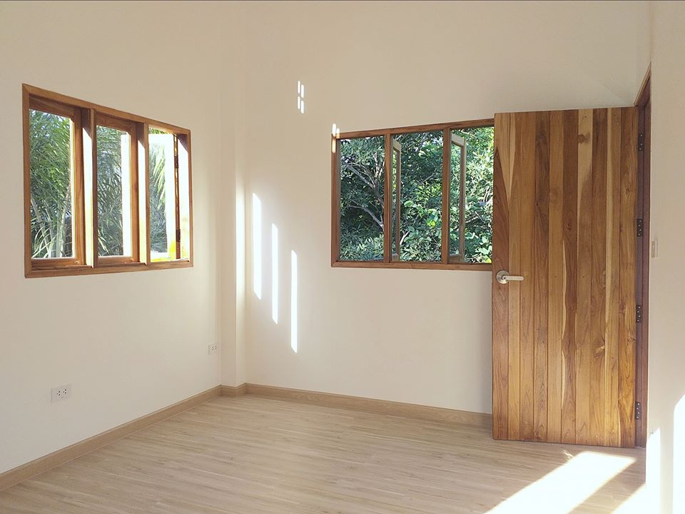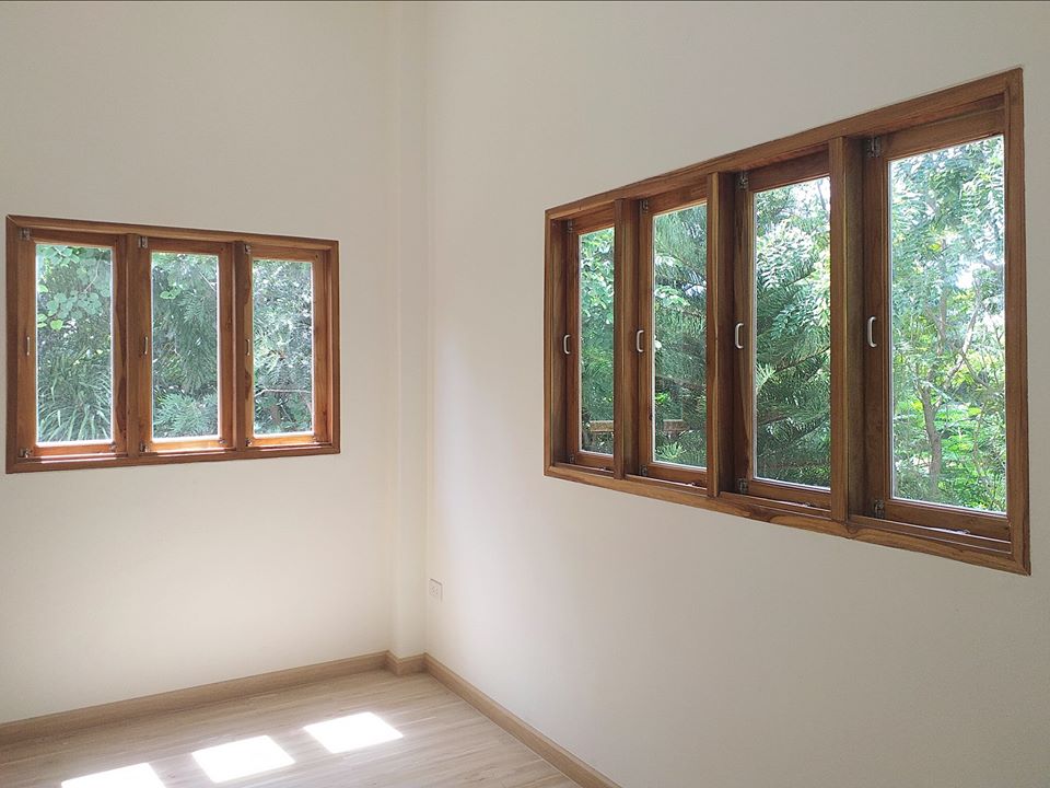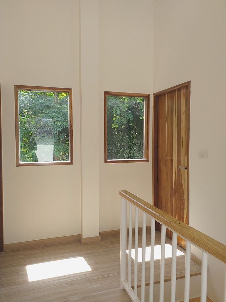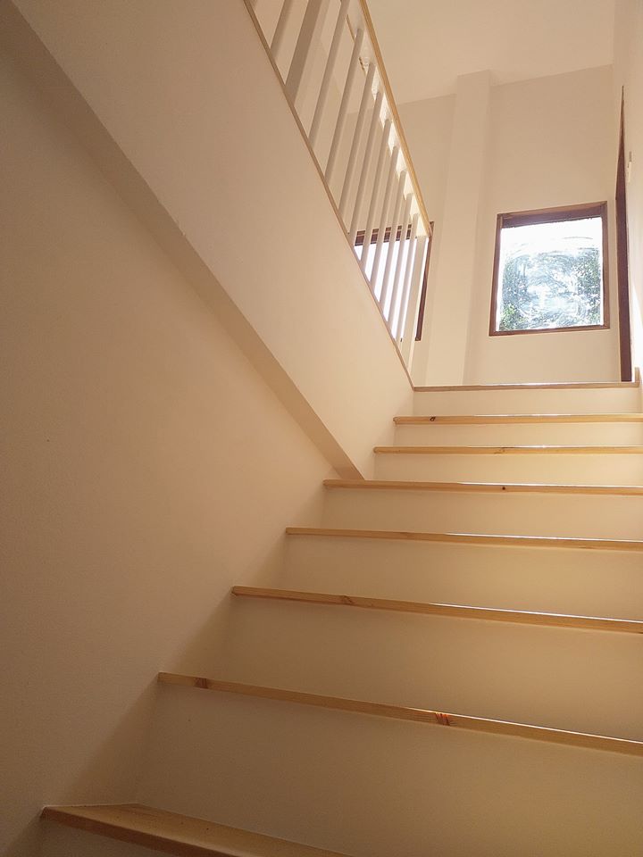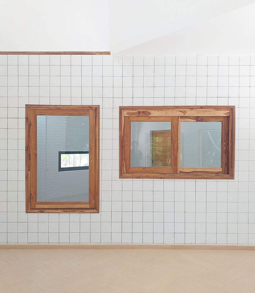 วัสดุสำหรับองค์ประกอบภายในส่วนใหญ่จะเป็นไม้ทั้งหมด ไม่ว่าจะเป็นบันได ประตู หน้าต่าง และพื้น เมื่อผสานกับพื้นหลังโทนสีขาวแล้ว เรียกได้ว่าเป็นไอเดียการตกแต่งที่เรียบง่าย แต่ได้ความสวยงามไปเต็ม ๆ เลยทีเดียว
