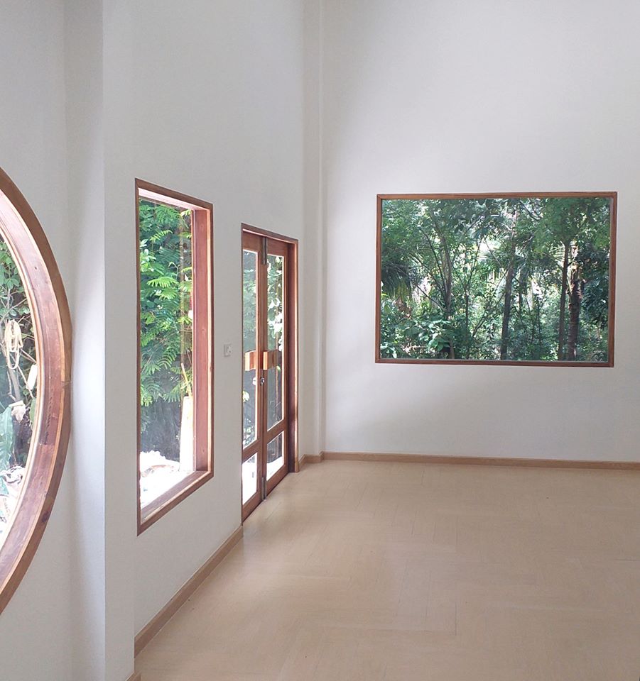 บริบทรอบบ้านคือป่าค่อนข้างทึบ จึงทำให้บ้านหลังนี้ได้รับความสดชื่นจากธรรมชาติเต็ม ๆ สามารถชมวิวป่าไม้สวย ๆ ได้ตลอดวัน