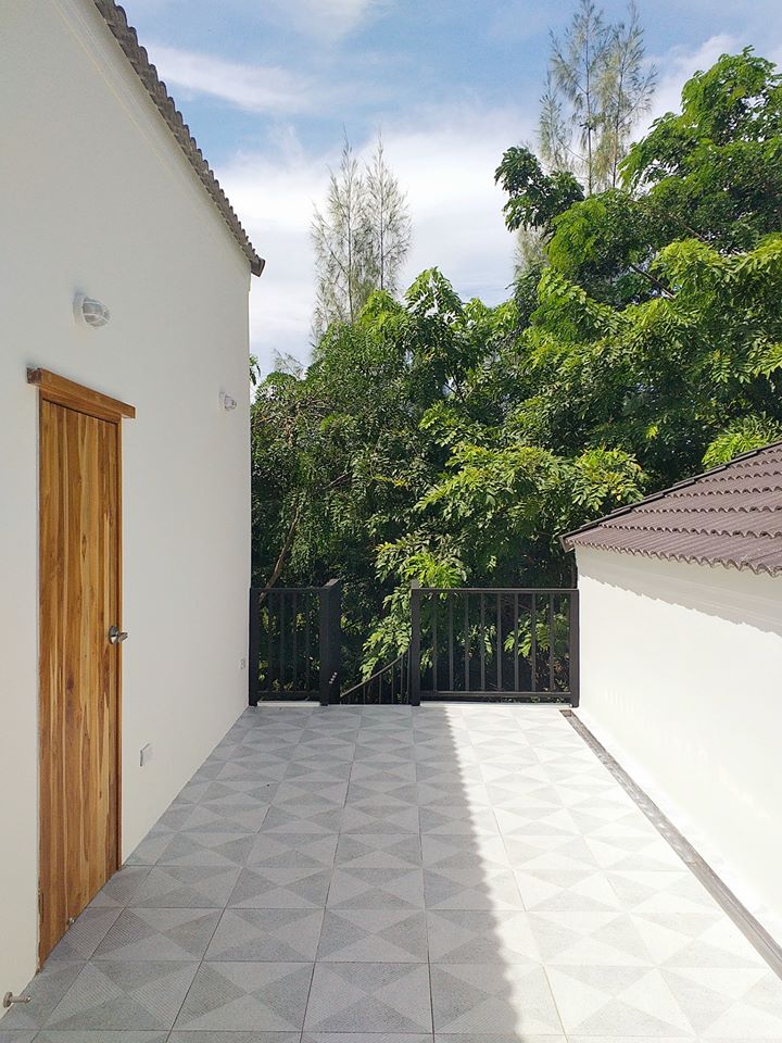 บริเวณนี้คือชั้นดาดฟ้า มีลักษณะเปิดโล่งไม่มีชายคา สามารถจัดสรรเฟอร์นิเจอร์เพื่อนั่งเล่นพักผ่อนหรือตกแต่งด้วยต้นไม้ได้ตามชอบ มีประตูทางเข้าบ้านอยู่บริเวณนี้