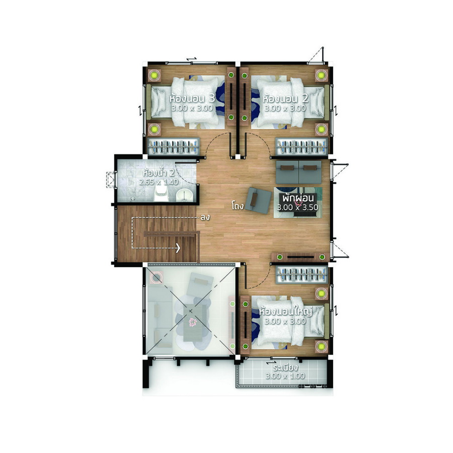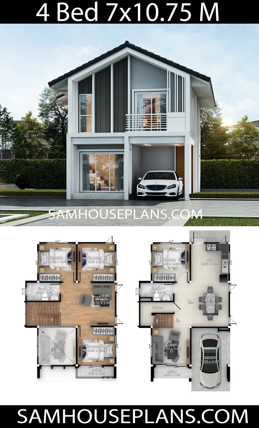 แบบบ้านสองชั้นทรงร่วมสมัย ออกแบบเรียบง่ายเน้นการพักผ่อน 4 ห้องนอน 2 ห้องน้ำ พื้นที่ 139 ตร.ม.